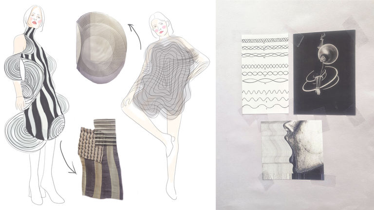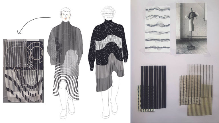 The visual aspects of the collection were inspired by sound waves - the materials dynamically shift in response to the wearer's movement and sound. While the project is highly conceptual, it encourages the integration of technology into fashion, not only to address practical needs but also to influence personal human relationships.